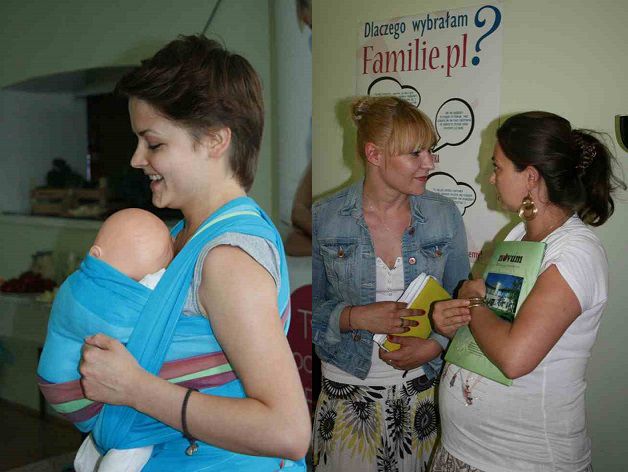 Instruktorka chustonoszenia - Agata Żulewska z Lenny Lamb pokazała sposoby wiązania chusty.